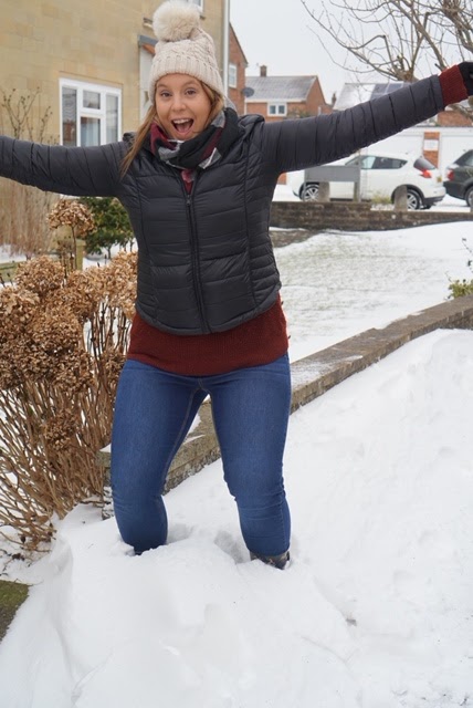 Waking up on Friday morning to see that the snow had settled and was at least 5 inches deep made me feel like a child at Christmas, I couldn’t wait to get outside and make footprints in the fresh snow. We had the leftover pancakes for breakfast, wrapped up warm and headed off to play in the snow. It was freezing and I’d say it definitely counted as a work out. We decided that it was wise to head out for a few more supplies to get us through the next day and decided that to keep us warm we would stop into McDonald’s for lunch. A chicken burger and Mozzarella dippers were enough to keep me satisfied until dinner. We warmed up and then when the snow started to fall again we decided that it would be a great time to go out again, after all, we don’t get snow very often and we didn’t want to waste it. All the excitement meant funny snow dances and even an attempt to do a burpee in the snow. My first attempt didn’t go quite as planned! (Watch it here) I will put my second attempt at the bottom.