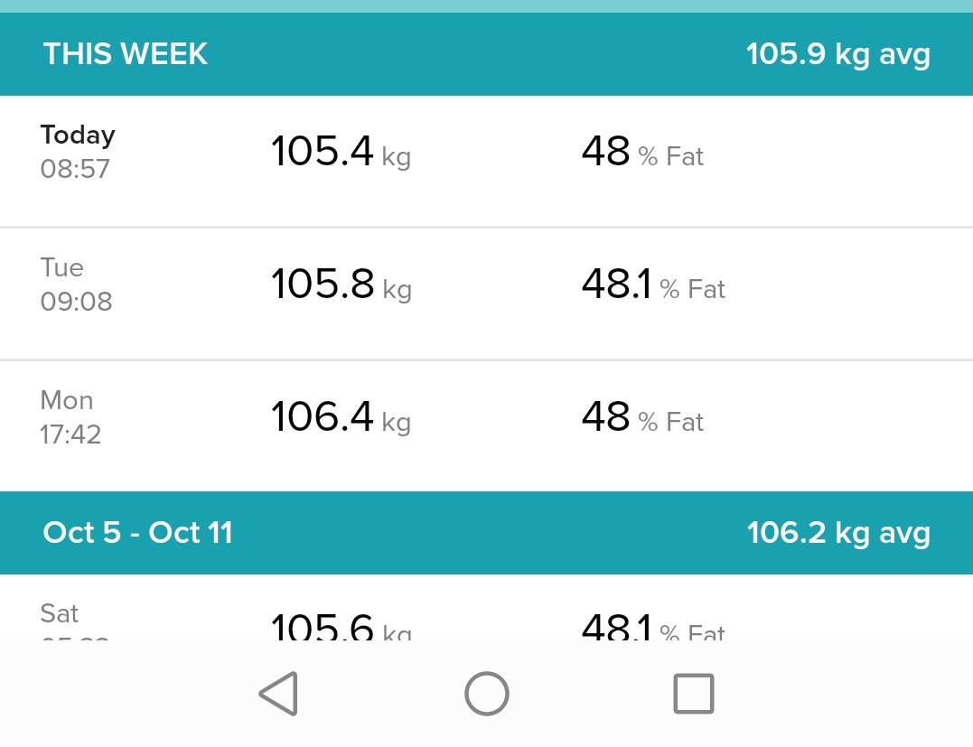 If I just weighed myself once a week and focused on the number I’d have been so annoyed and thinking I hadn’t made progress however overnight I’ve “transformed” and lost 1.5kg or 3lb ish.