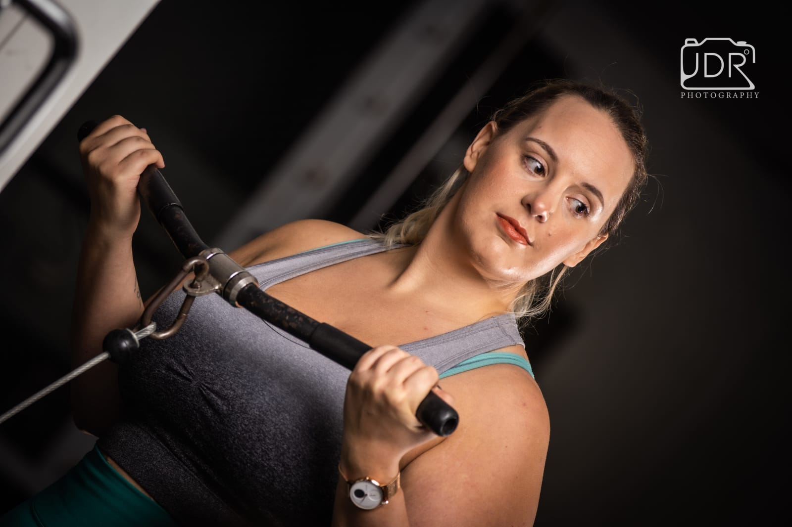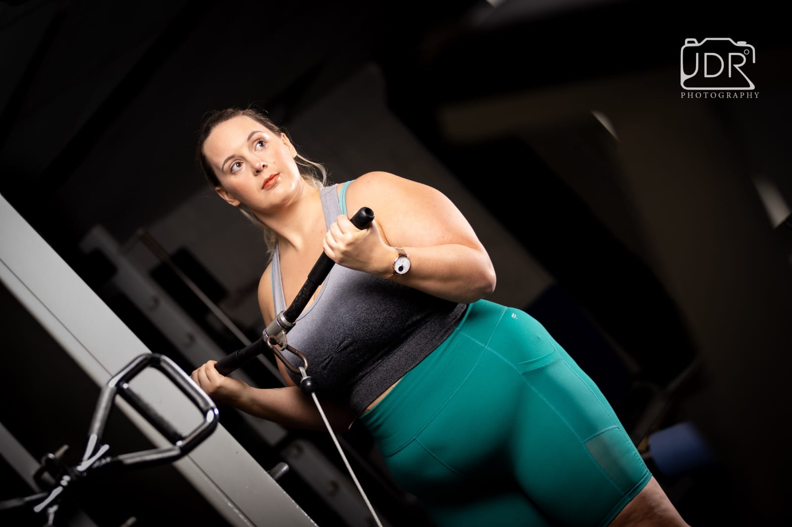 After he set up, we took a few test shots and then came the really awkward part for me… Posing. For someone who loves a selfie and has a camera roll full of pictures of herself I have no idea how to pose when I cant see how I look. I got some tips about what sort of things looked good and the rest was trial and error for me. After about 10 minutes I was feeling much more comfortable and forgot what I was worried about. We did some mirror shots and some shots with some weights then after a sneak preview, a quick change and a quick weights session to get a pump on we moved on to some equipment. Weights are where I feel most confident so posing for this bit felt a lot more natural to me. Jordan listened to what I wanted pictures of and got to work setting up and making sure he had the right lighting and angle.